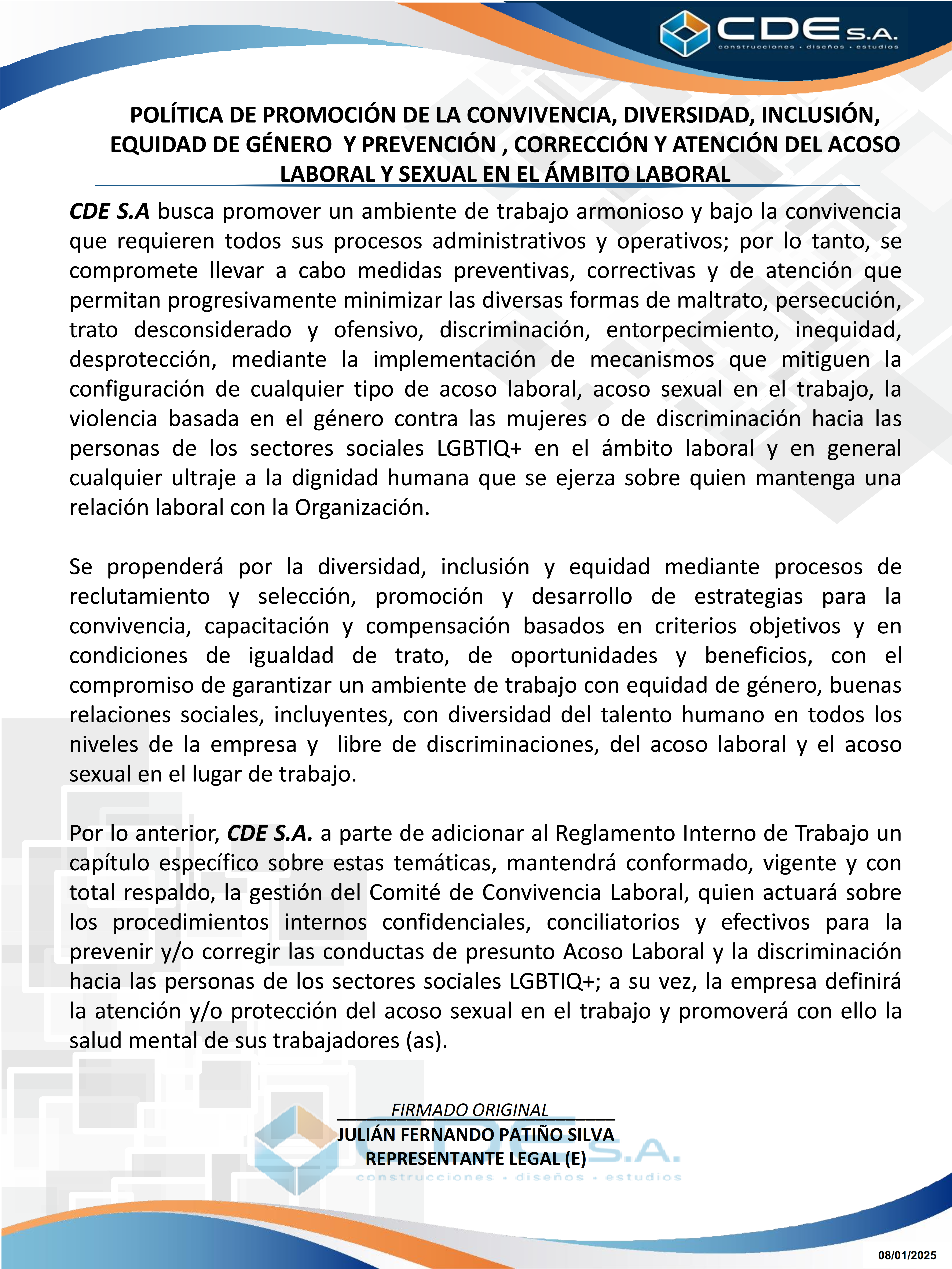 Política de acoso laboral y acoso sexual